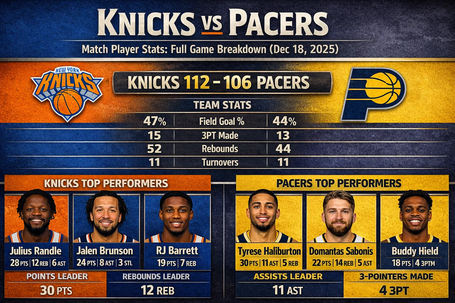 This page is a complete, easy guide for knicks vs pacers match player stats. It explains who scored, who created plays, and why the final minutes changed everything. The goal is simple: you get the stats, plus real meaning behind them, without confusing words.