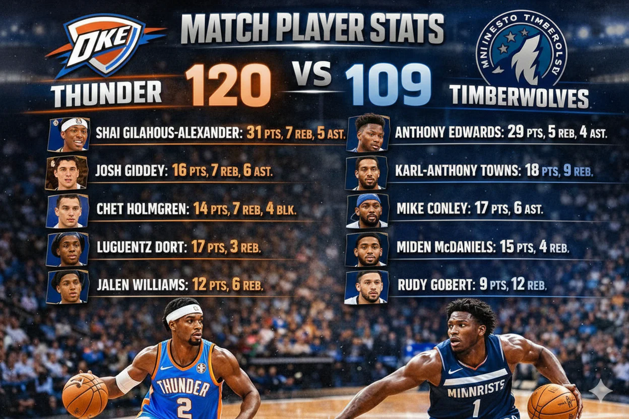 Oklahoma City Thunder vs Timberwolves Match Player Stats